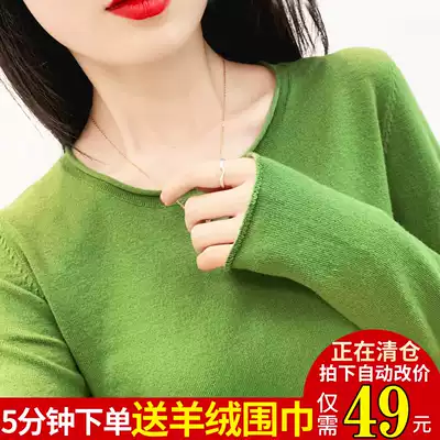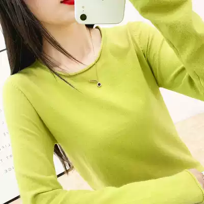 Thin round neck sweater pullover long sleeve knitwear women loose short style commuter slim base shirt big size