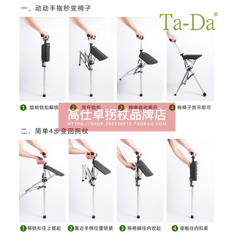 Delta imported elderly folding stick bench with seat crutches dual-purpose can sit multi-functional non-slip portable