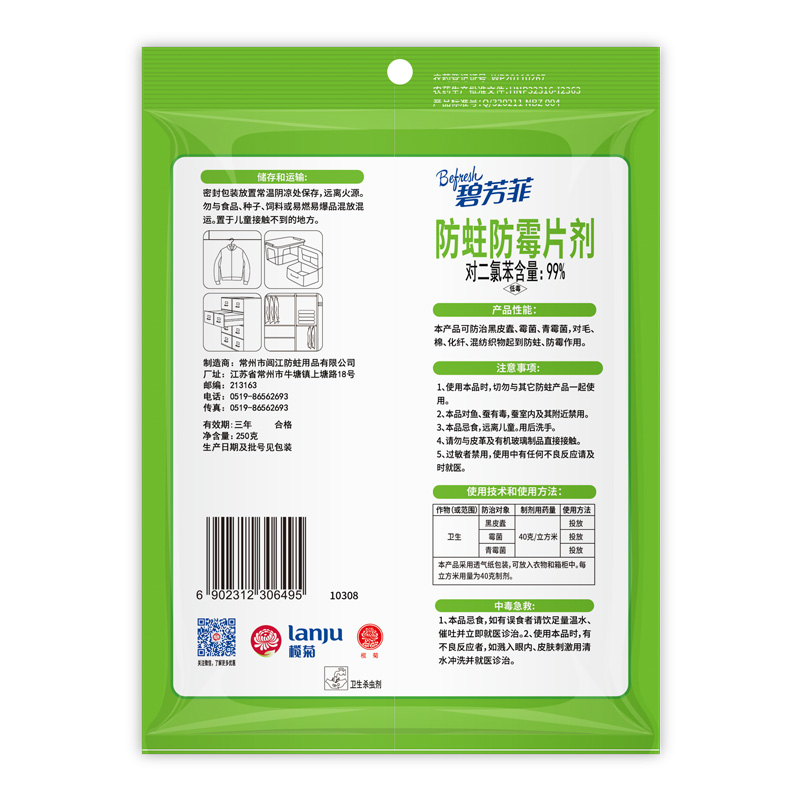 Rukiju Bifangfei anti-moth and anti-mildew sheet Elegant And Fragrant Zhangencephalu Wardrobe Mold and anti-bug-proof closet 1 bag total 250g
