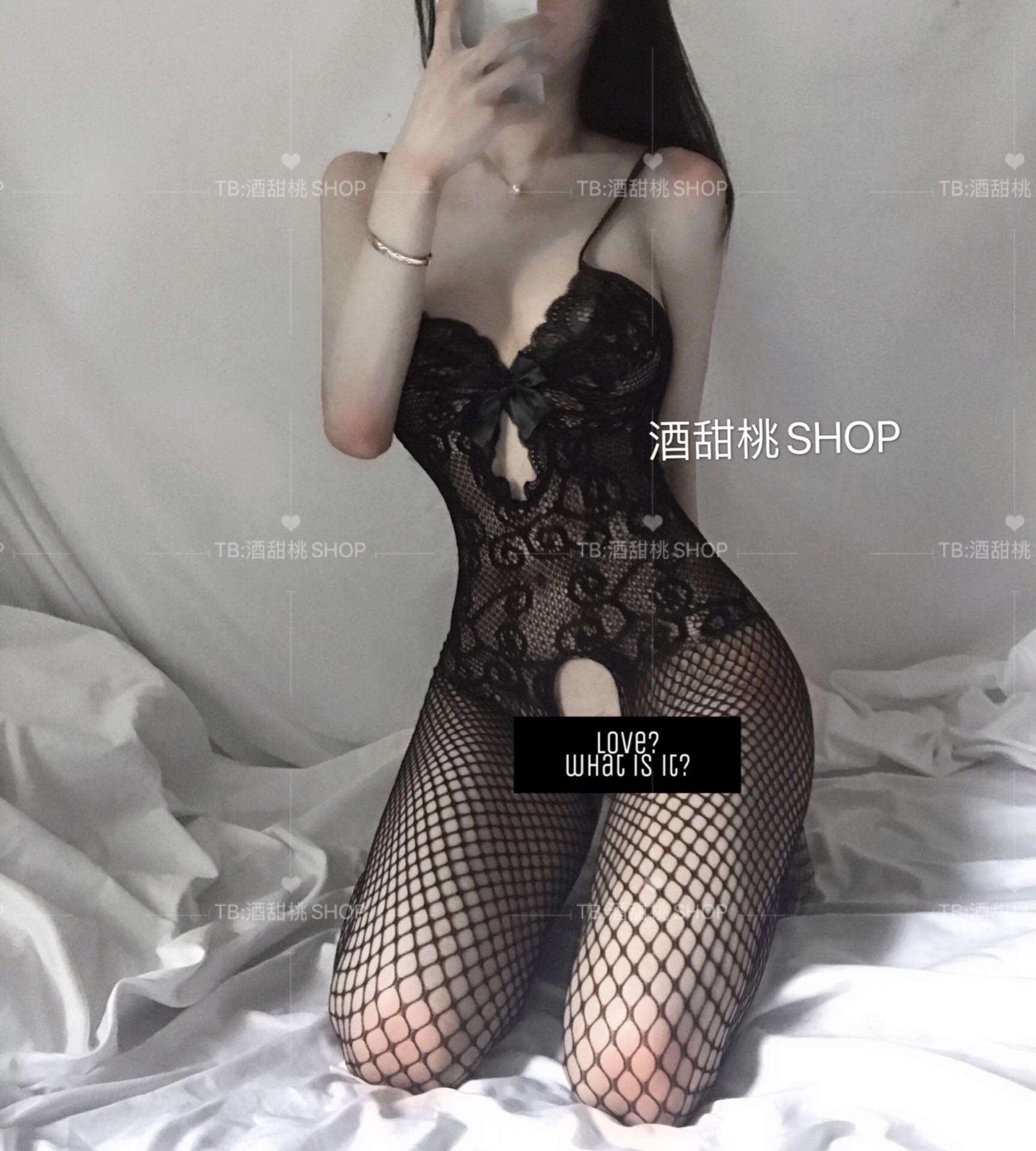 Wine sweet peach Catgirl vacuum sexy seduction cut-out lace one-piece open full body fishnet socks erotic underwear