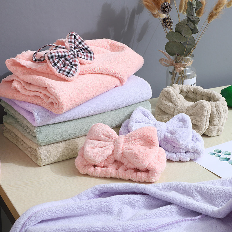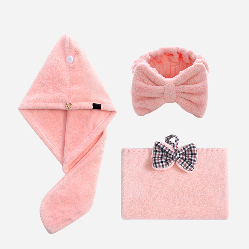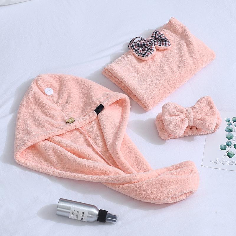Dry hair Three sets of light purple dry hair Three sets of Bean Turquoise Hair Dry Hair Three Sets Huddled Butterfly Knot Towel Light Purple Bow Tie Towel Bean Turquoise Bow Tie Towel Hump Single Triangular Hat Orange Powder Single Triangular Hat Shallow