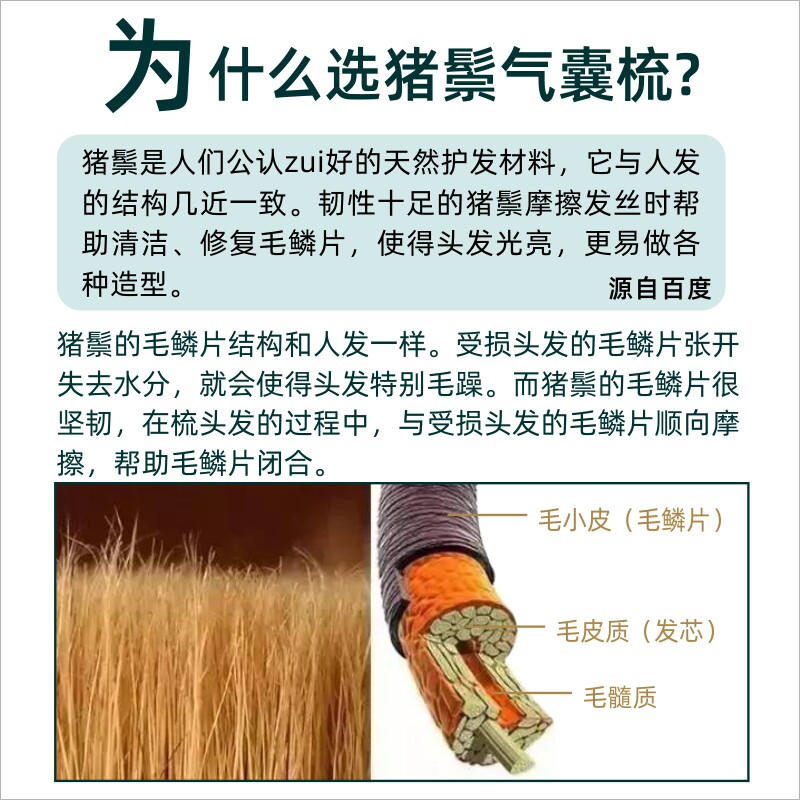 Natural boar mane airbag massage comb Ebony air cushion wood comb Anti-static hair loss Curly hair smooth hair White hair