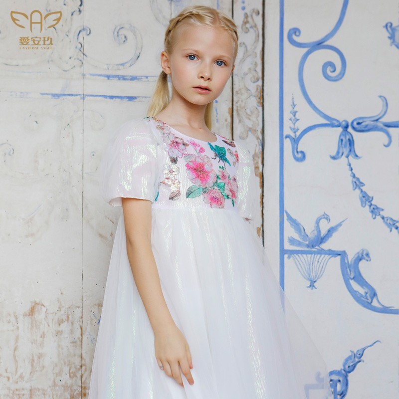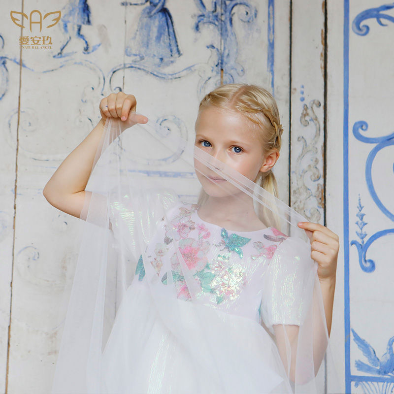 Love Anjiu Children Princess Gown Kid Host Evening Gown Noble Girl Walking Show Girl Wedding Dress Fluffy Yarn
