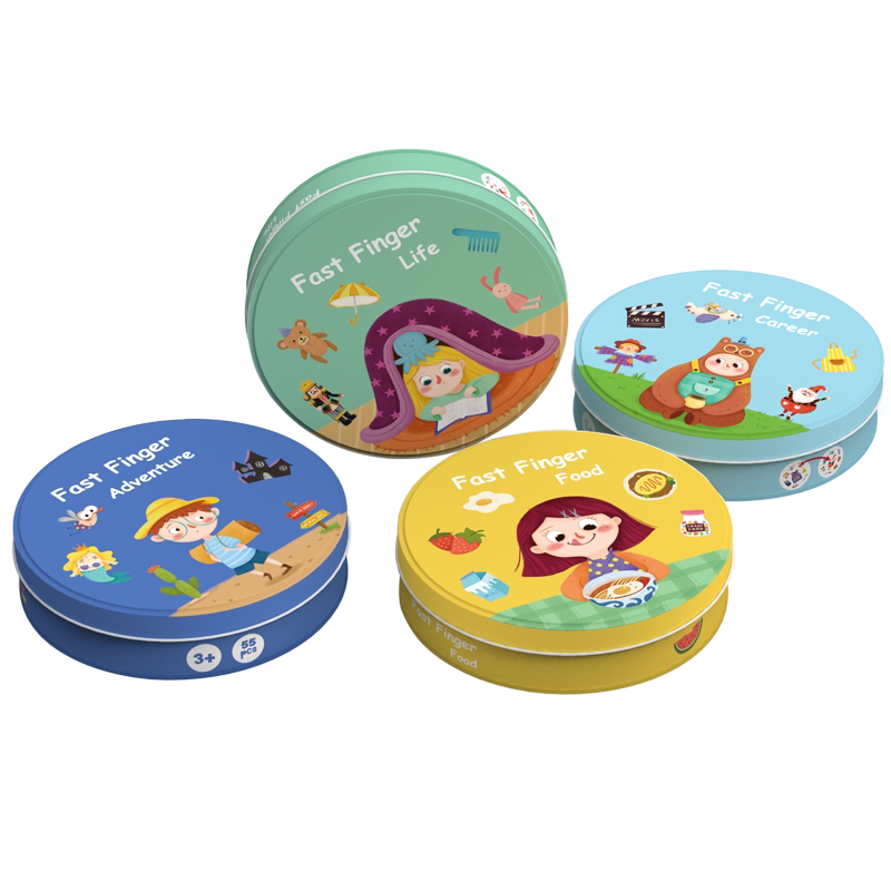 Children focused on training toy sausage party finding same pairing card monster kitchen table Tour game