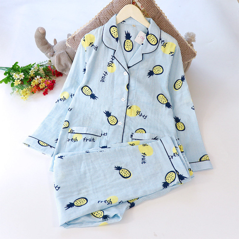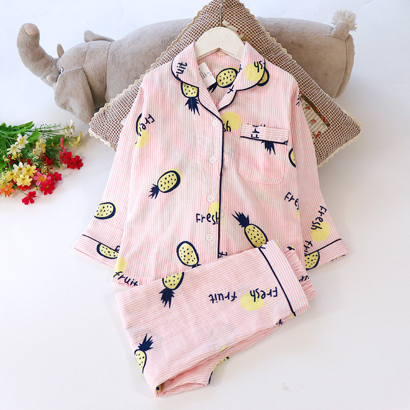 Spring Summer Pure Cotton Double Layer Gauze Mother Woman Parent-child Sleepwear Long Sleeve Long Pants Suit Soft And Breathable Shuttle Cotton Home Clothing