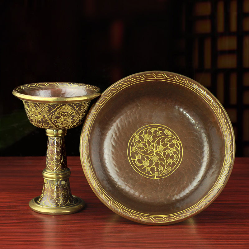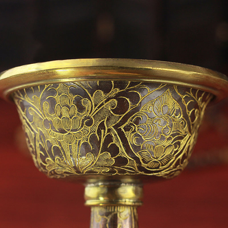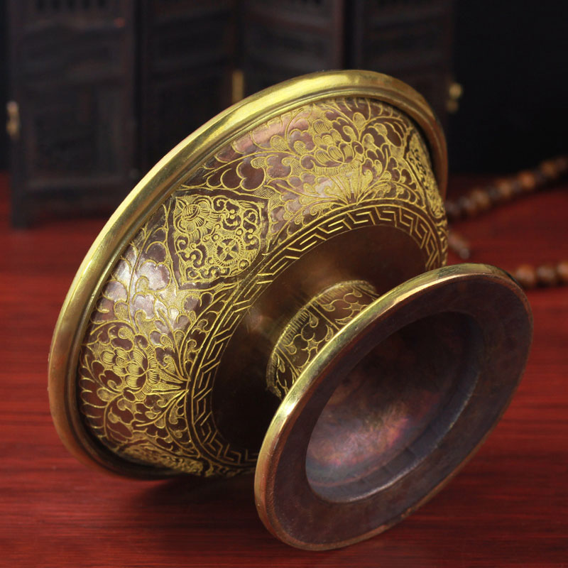 Protector cup pure copper Buddhist supplies Nepal imported handmade copper gold-plated carved flower enshrine 20cm
