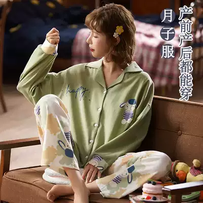 Yuezi clothing summer thin postpartum pregnant women cotton pajamas 5 Months 6 sweat absorption breathable spring and autumn maternal breastfeeding clothes