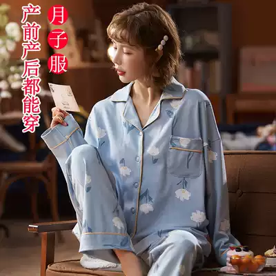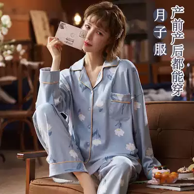 Yuezi clothing breastfeeding pajamas spring and autumn pregnant women long-sleeved cotton maternal pregnancy lactation clothing postpartum home clothing set