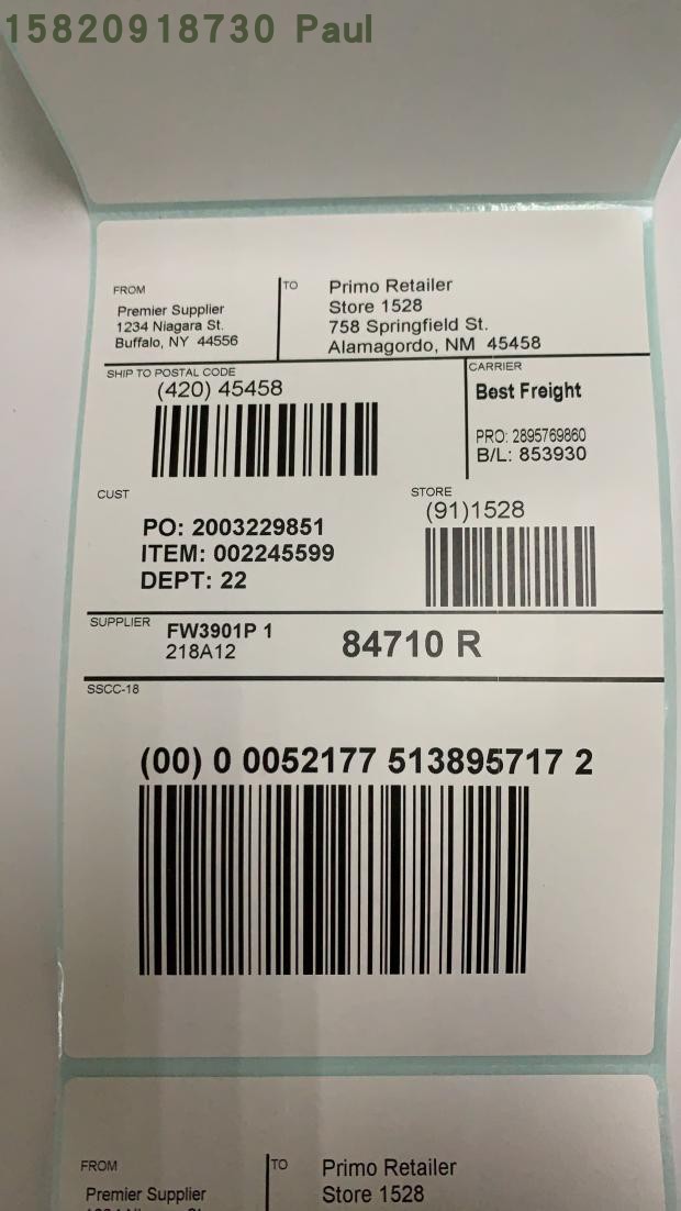 Label Printing barcode paper