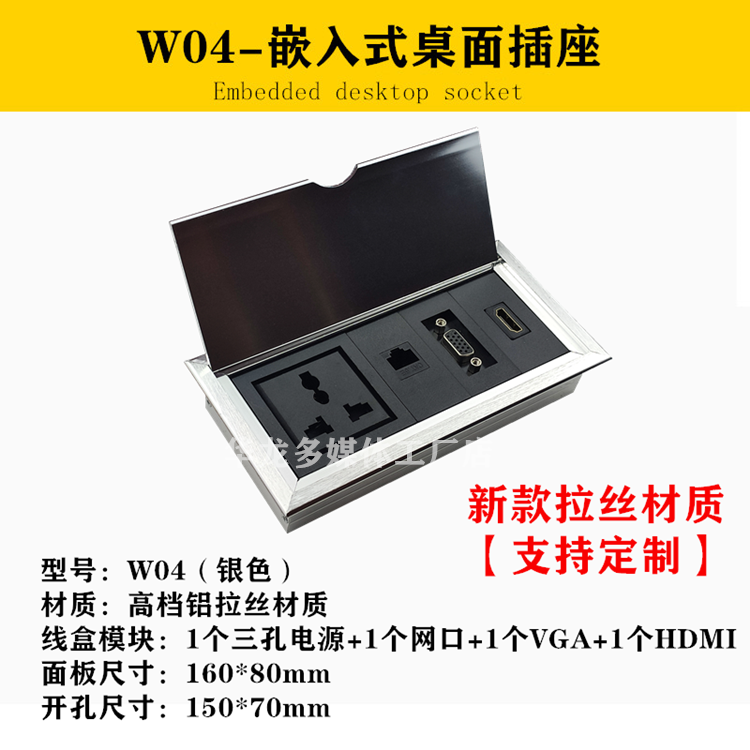 Countertop clamshell power supply multimedia desktop socket recessed row invisible office conference table multi-function cable box