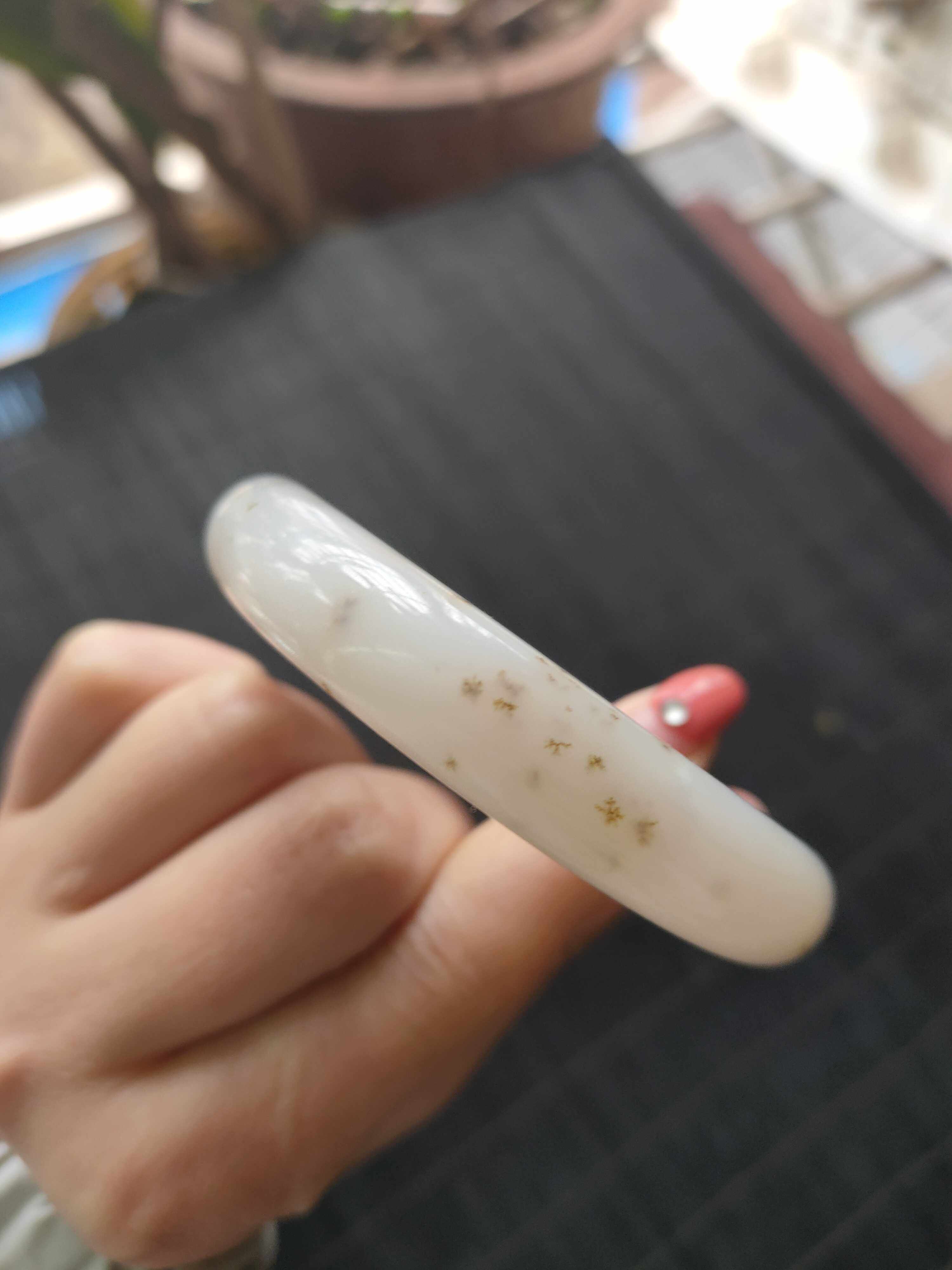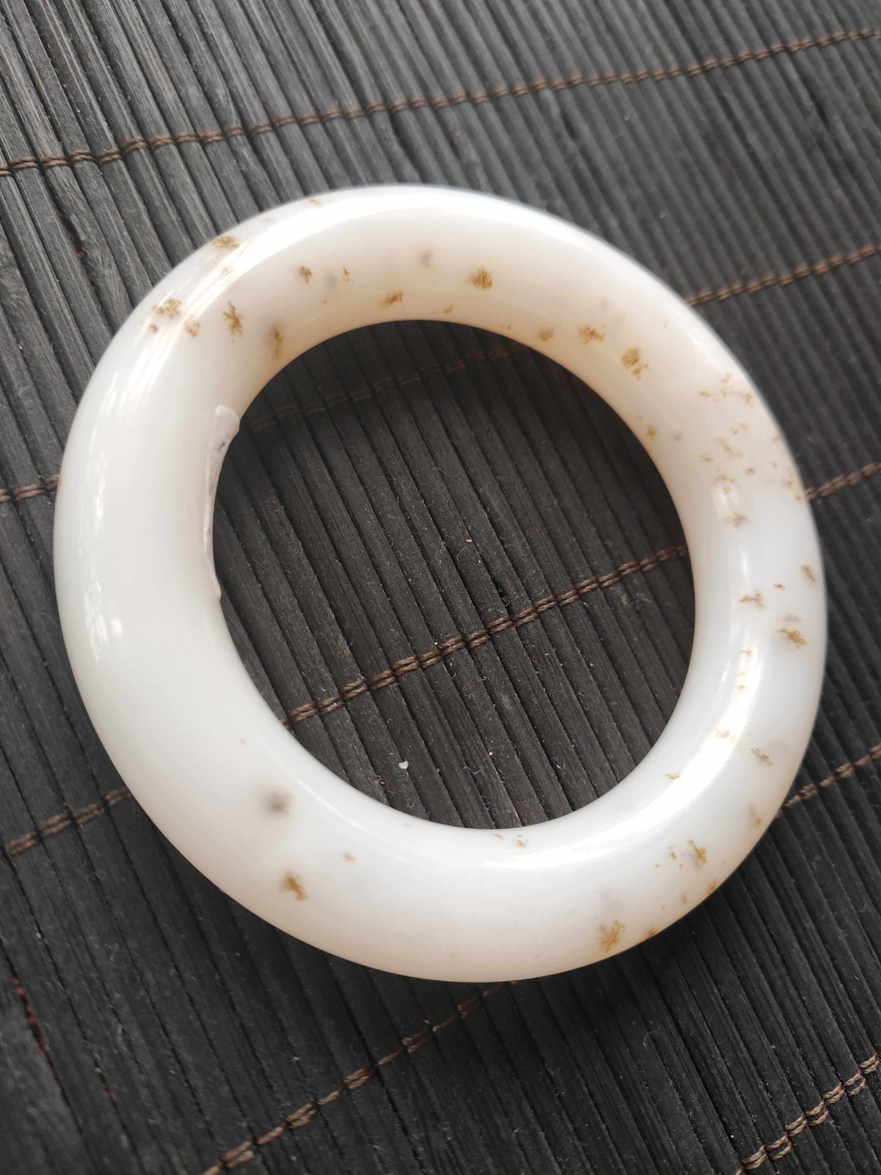 Love appreciation Hetian Jade Qinghai material fine Bison ditch white jade Old cooked jade Gold Osmanthus thick round bracelet