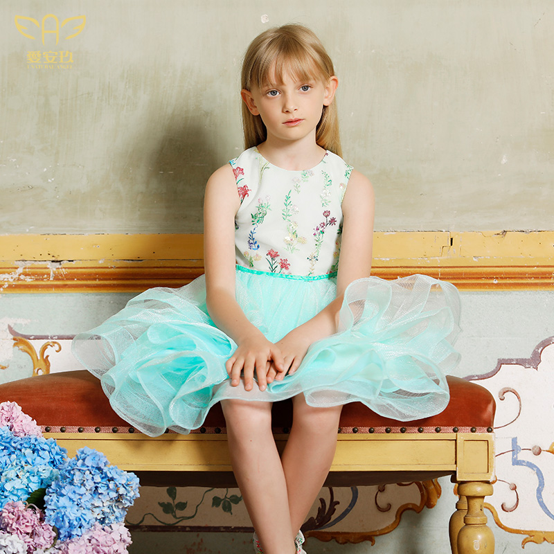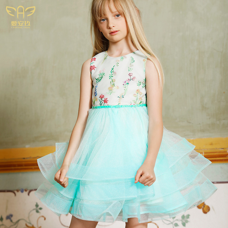 Love Anjiu Girl Gown Dress Foreign Flower Princess Skirt Host Walking Show Fluffy Children Piano for a Spring Festival