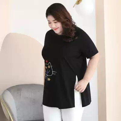 Long version T-shirt female 2021 summer new fat plus size women's 200kg fat mm medium long version short sleeve top tide
