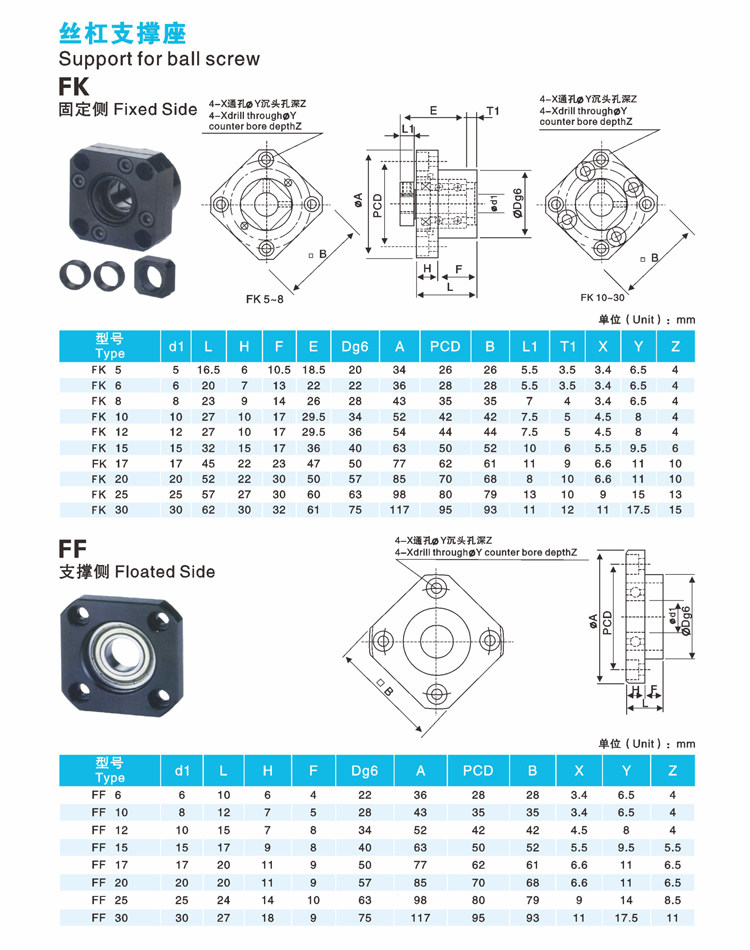 Ball bearing lead rail support seat FF FK6 8 10 12 15 25 30 30 fixed seat bearing