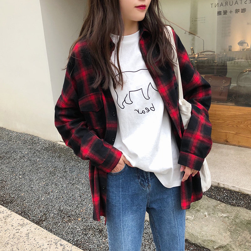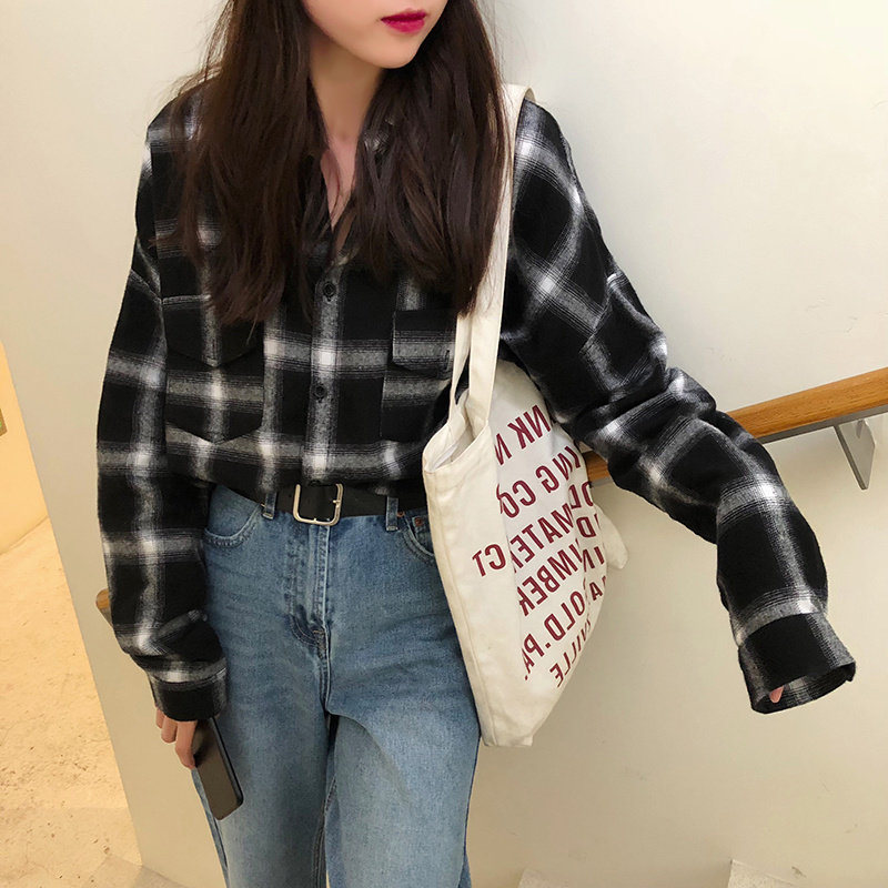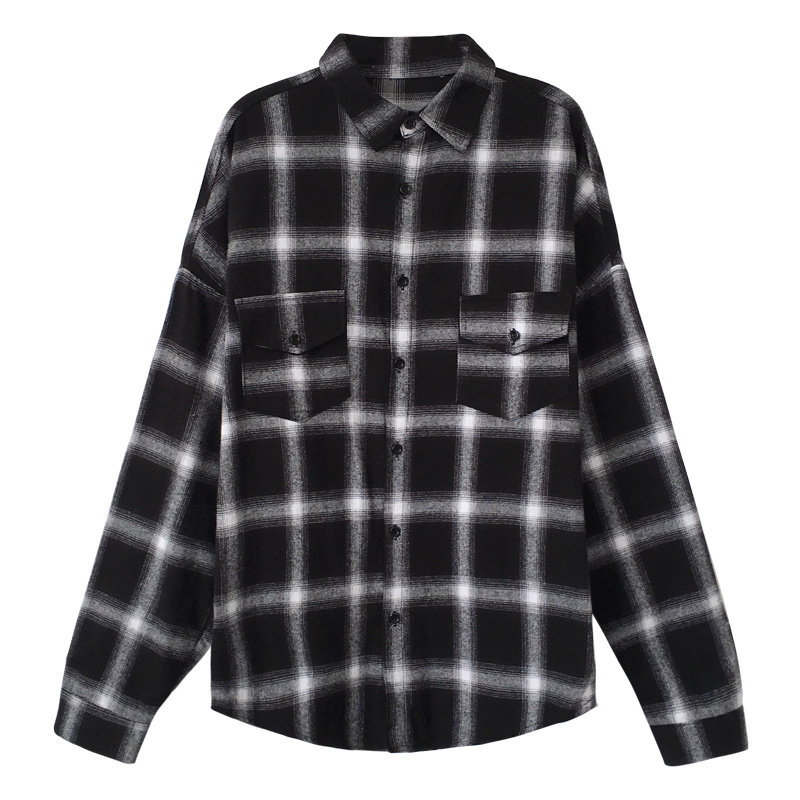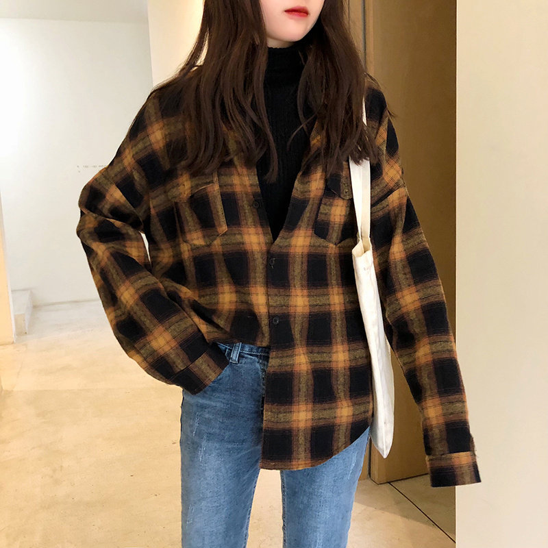 European station brushed plaid shirt women's retro Hong Kong style design niche 2022 spring, autumn and winter new tops