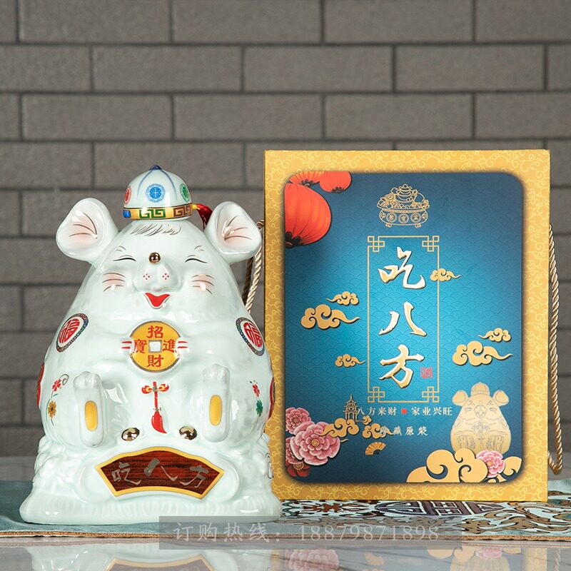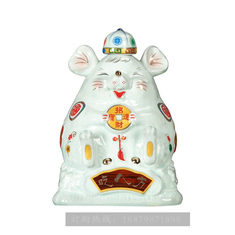 Wine bottle ornaments Jingdezhen ceramic household sealed 5 catties zodiac rat craft creative wine jug wine tank wine storage device