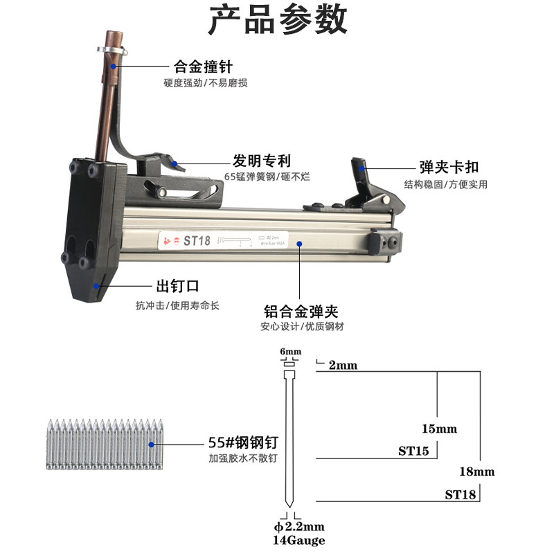 Manual nail gun ST18 nail gun Semi-automatic cement wall nail gun Woodworking decoration tools Nail trough artifact