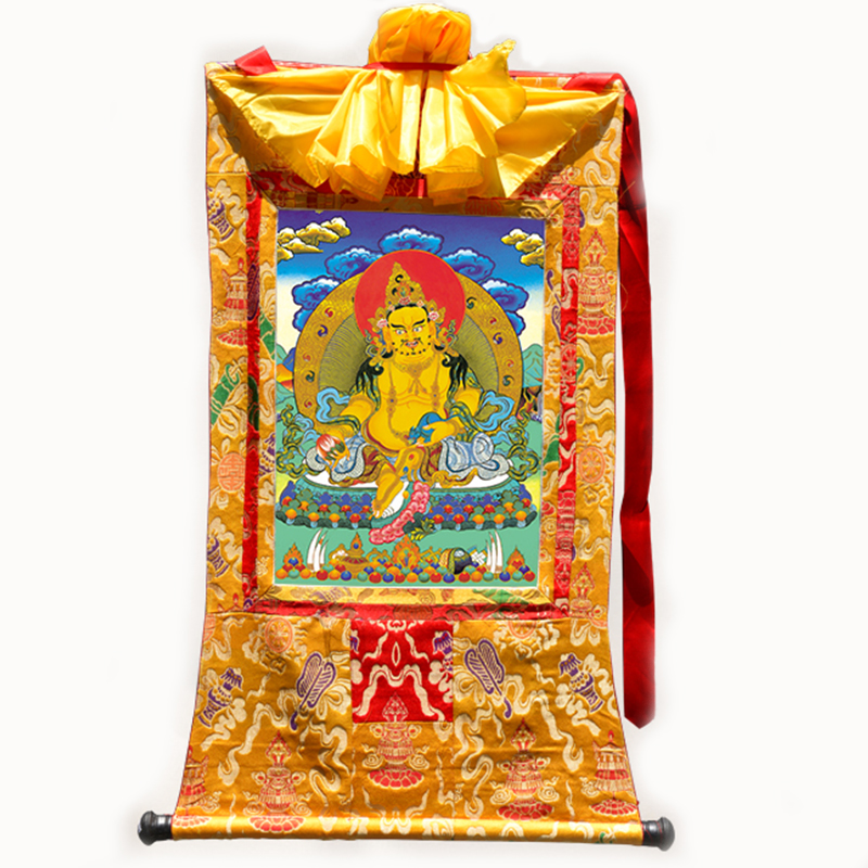 Tibetan thangka hanging at home Tibetan thangka hand-mounted living room decoration painting huang caishen large custom promotion