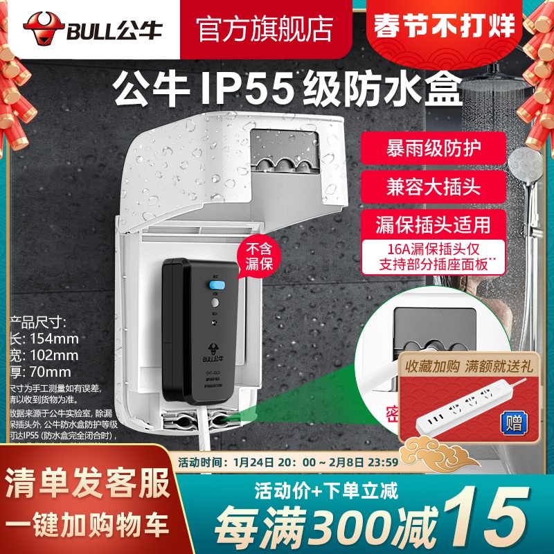 Bull socket flagship switch waterproof socket 86 waterproof splash switch panel box bathroom F04 white waterproof box