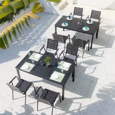 160*90 aluminum alloy table 6 aluminum alloy armchair 160*90 aluminum alloy table 6 aluminum alloy flat tube chair 160*90 aluminum alloy table 6 aluminum alloy vertical stripe chair
