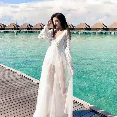 One-piece two-piece seaside resort swimsuit female summer fairy fan sexy thin Sanya photo sunscreen Beach Skirt