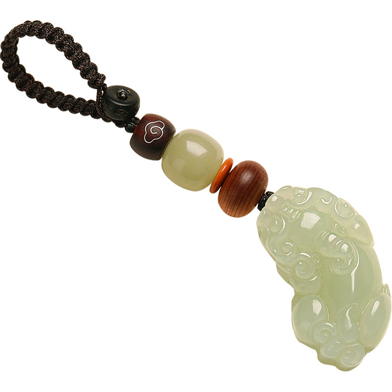Hetian jade zhao cai cat car keychain pendant transfer ping an men's and women's high-end pendant high-end pendant chain