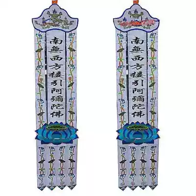 Custom Buddhist Taoism tide embroidery 15 meters streamers hanging streamers Prayer flags hanging streamers White streamers Longmen Buddha tent banner table circumference