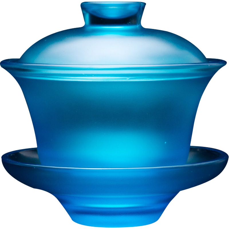 Rongshan Tang Bao Blue Glazed Triple Talent Cover Bowl Tea Bowl Tea Bowl Tea Blue Large Thickened Glass Transparent Woman Kung Fu Tea Set