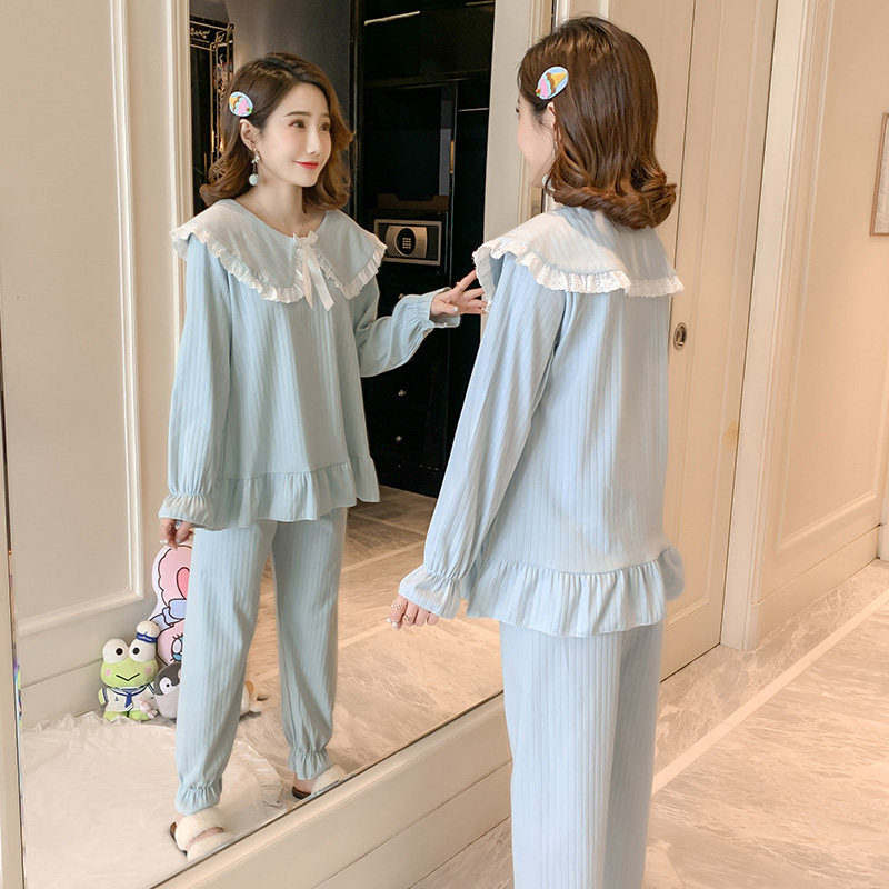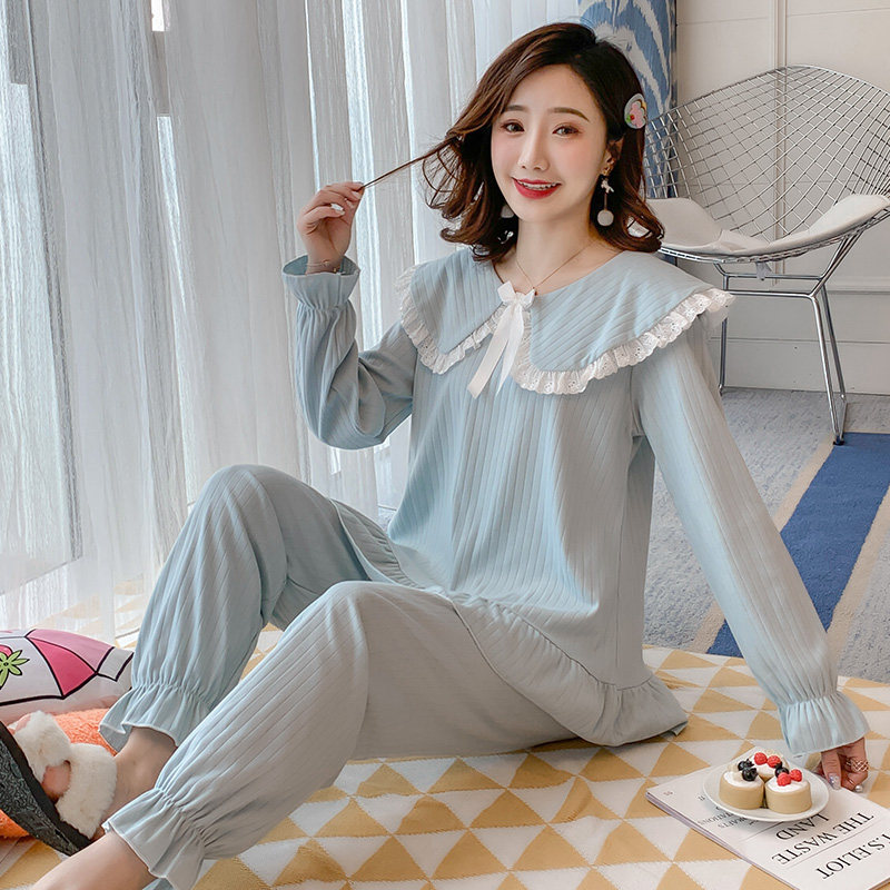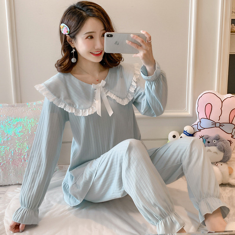 Pajamas female spring and autumn cotton long sleeve thin Korean version of fresh student home clothes female summer sweet and cute suit