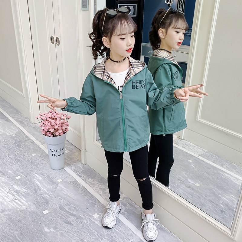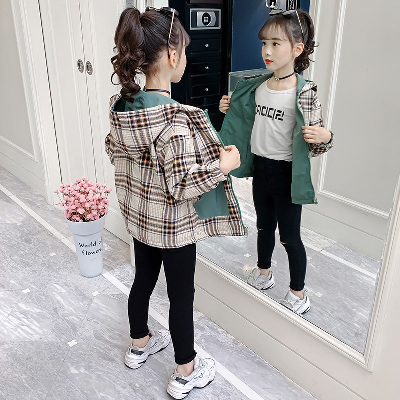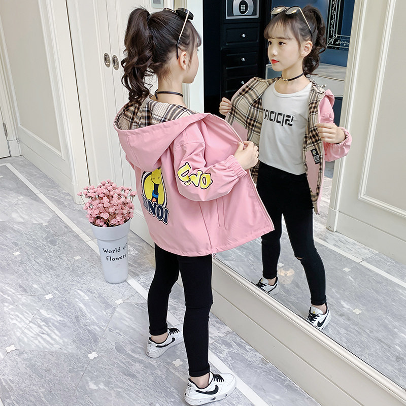 Girls Spring Costume 2022 new Yang 5 - year - old girl Han Edition 6 two sides wear 7 middle 8 spring and autumn windwear tide