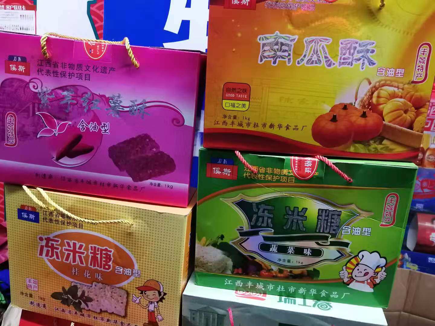 Out of stock, don't shoot Jiangxi Fengcheng frozen rice candy with four flavors, pumpkin, vegetable, purple potato, and sweet-scented osmanthus flavor.