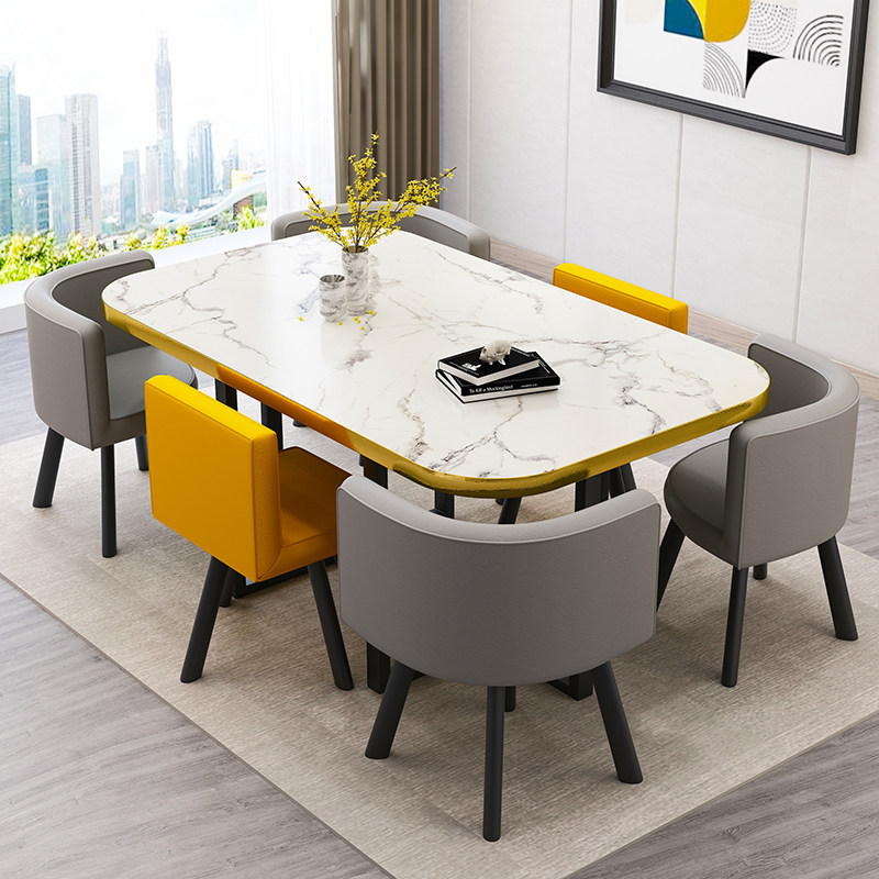 Negotiation table and chair Table and chair combination 6 people reception table Modern simple Nordic rectangular household small household dining table