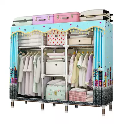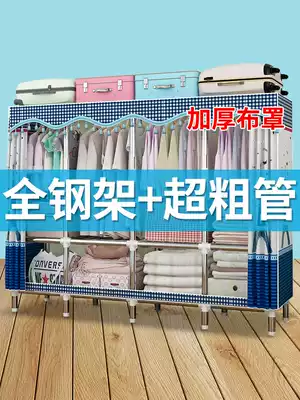 Simple cloth wardrobe steel pipe thickened reinforcement full steel frame home bedroom fabric wardrobe rental room wardrobe