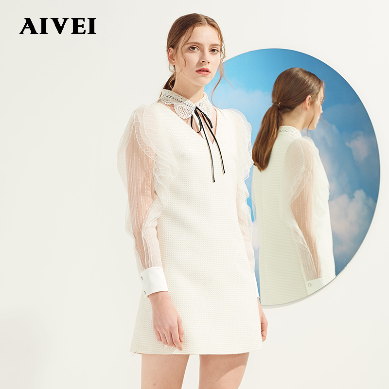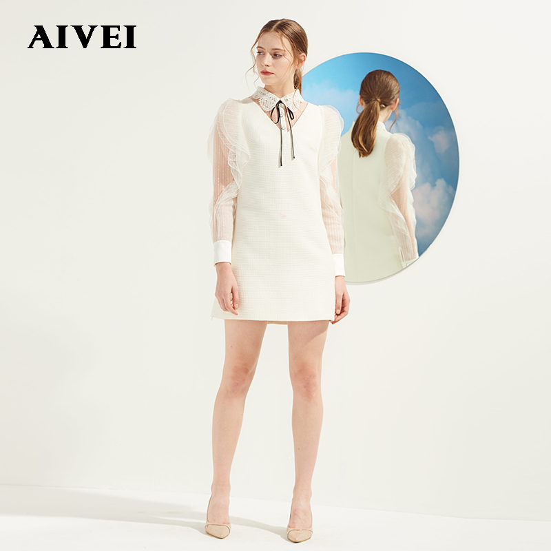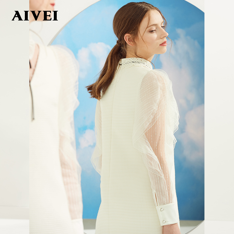 AIVEI is pleased to congratulate Aiweichun shopping mall with the same mesh mesh stitching perspective sleeve age-reducing dress M7100605