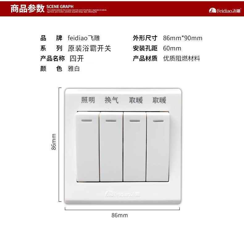 Feidiao original yuba four-open switch powder room bathroom switch universal single control four-control panel 86 type