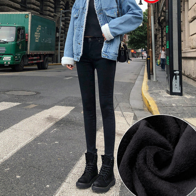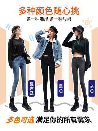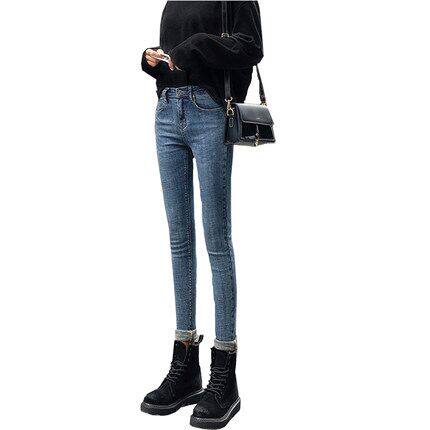 Hong Kong 2022 spring new large size Korean version of the body 100 hitch smoke pipe trousers female plus suede jeans high waist display slim damp