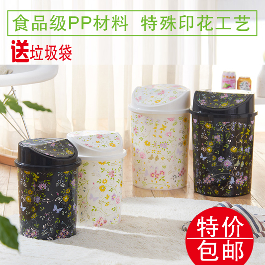 Shake lid trash bin Living room powder room waste basket Covered kitchen storage bucket