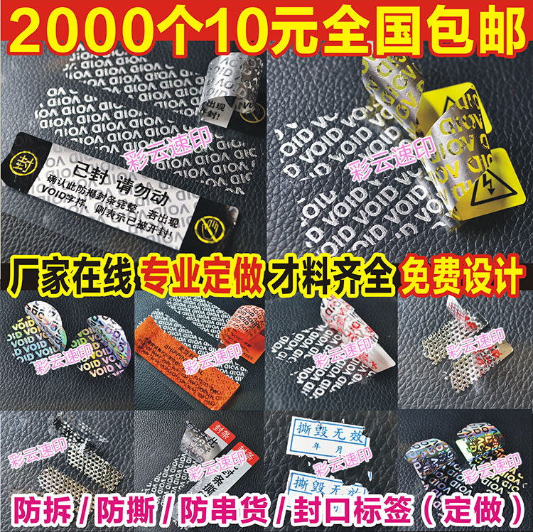 VOID anti-tear label anti-demolition laser anti-counterfeiting tearing invalid disposable sealing delivery mobile phone sealing sticker customized