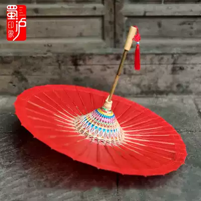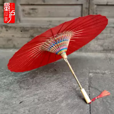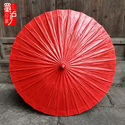 Oil paper umbrella Hanfu ancient style props classical rainproof sunscreen old-fashioned pure handmade practical Tung oil umbrella wedding umbrella Big Red