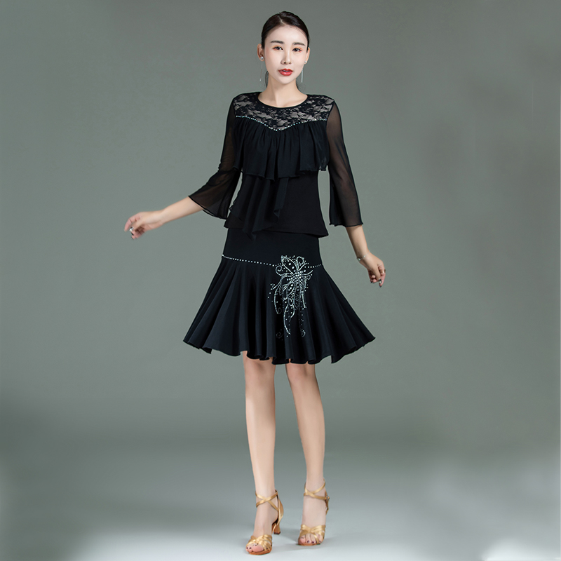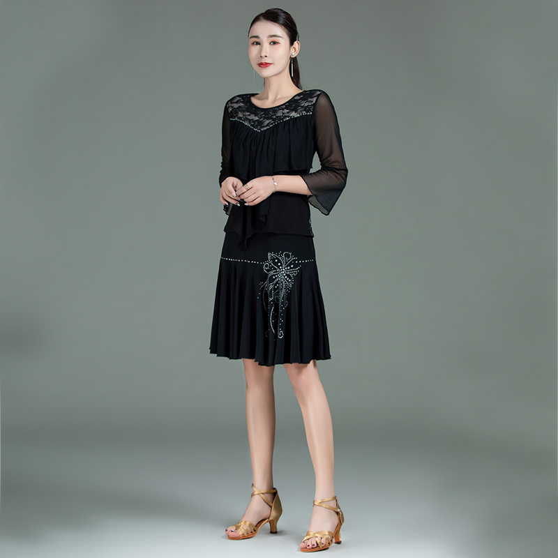 Special beauty modern dance skirt new bright diamond female adult Joker square dance Latin three-step practice dance skirt