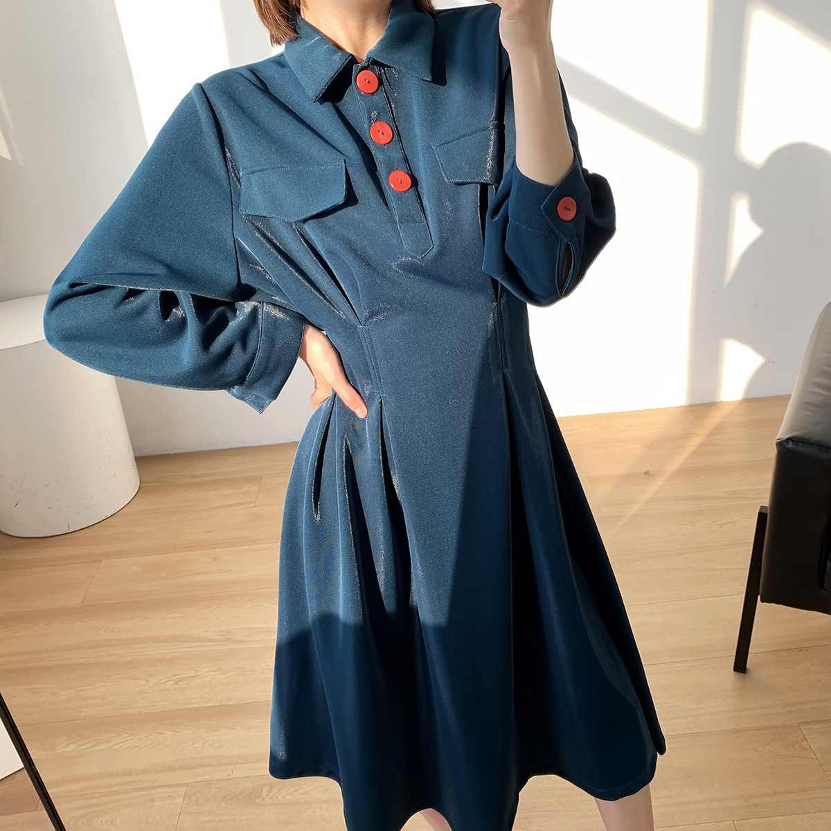 Gogo Customized Blue Ocean Woman 2022 New Waist - Skin Fashion Mid - Long - Edition Shirt