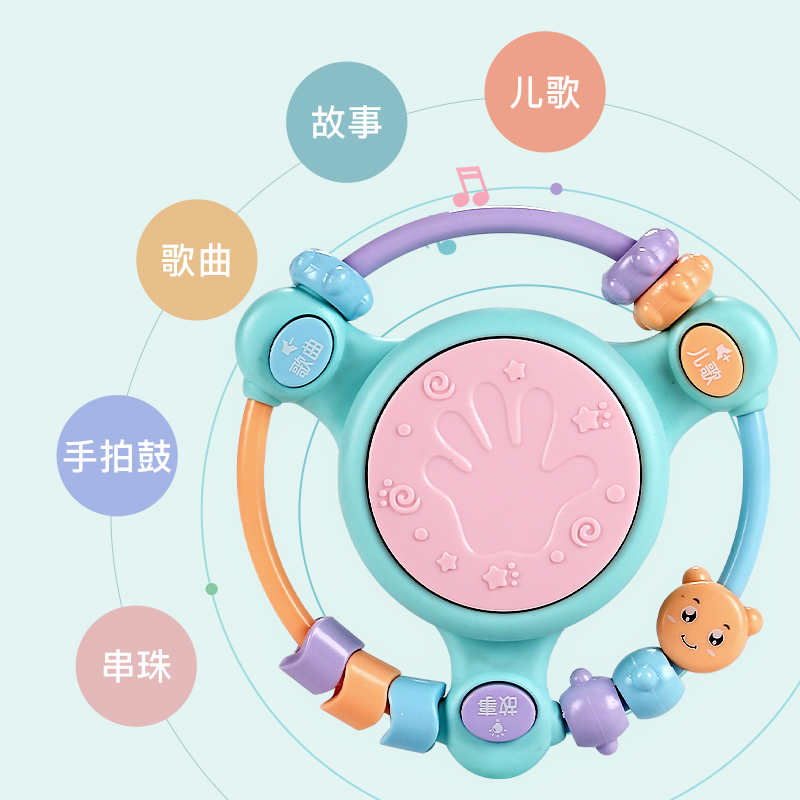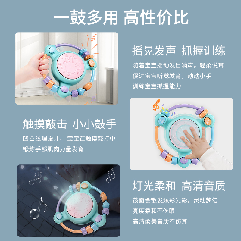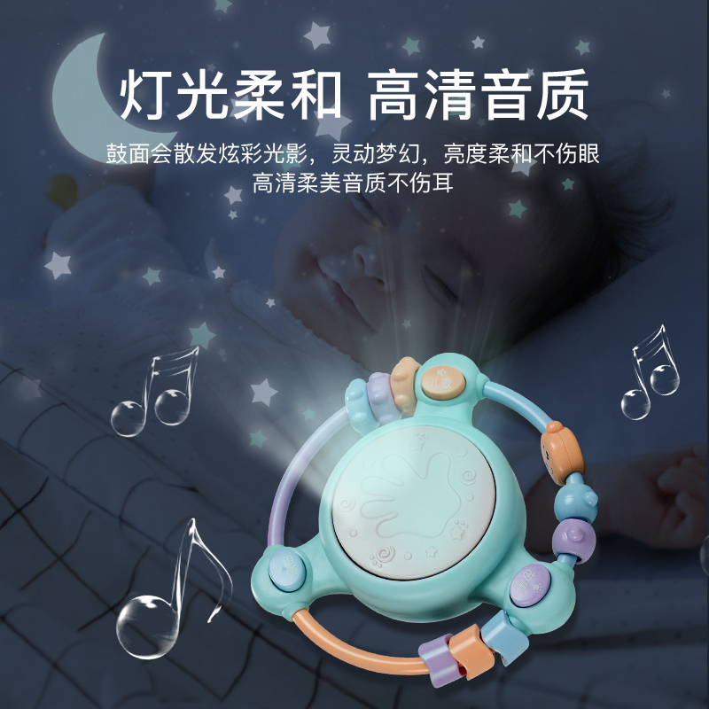 Mint Green-Projection Microphone Three-Piece Set (Rattle Hand Drum Guitar Music Hand Drum) Three-Piece Set (Piano Rattle Rattle Hand Drum) Six-Piece Set Mint Green