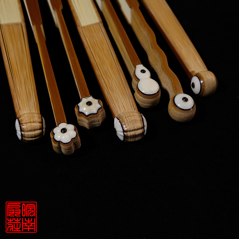 9 5 inch 18 square imitation ancient jade bamboo monk's head folding fan gourd head daisy head water mill jade bamboo text playing fan su fan