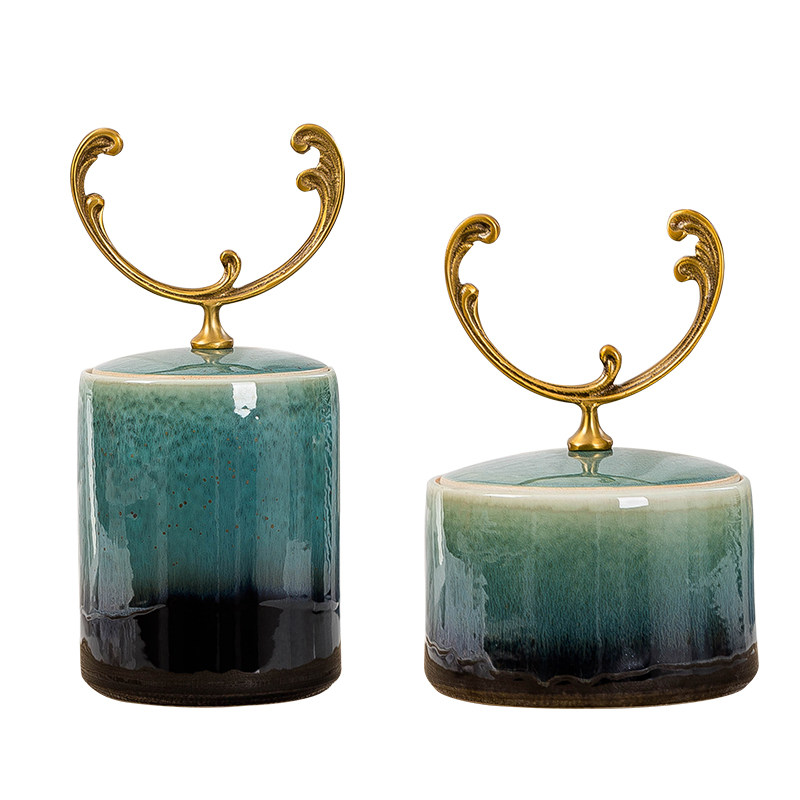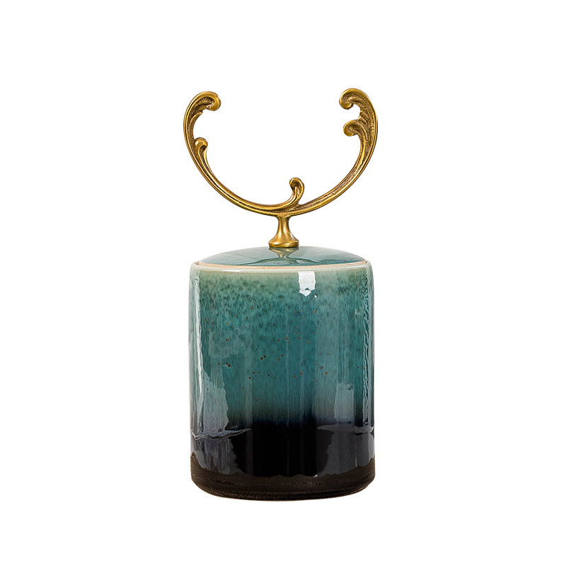 New Chinese Classical Jingdezhen Ceramic Ornament Storage Tank Living Room Tea Table TV Cabinet Entrance Study Decorative Copper