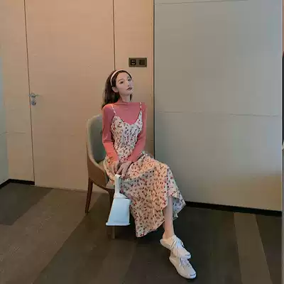 Spring 2020 women's sling goddess fan clothes skirt floral two-piece suit small air fragrance dress
