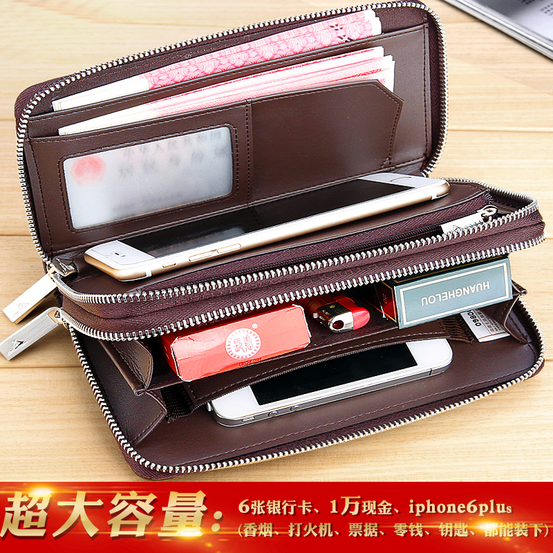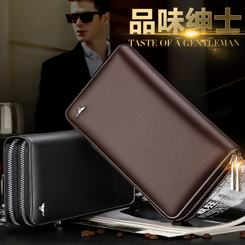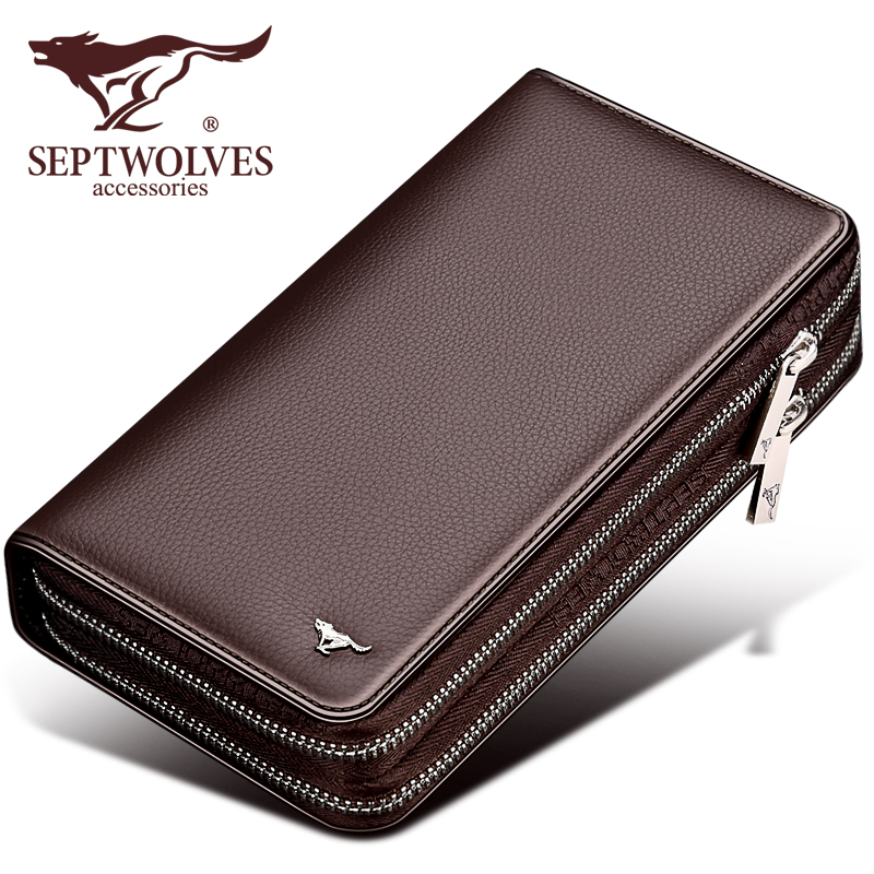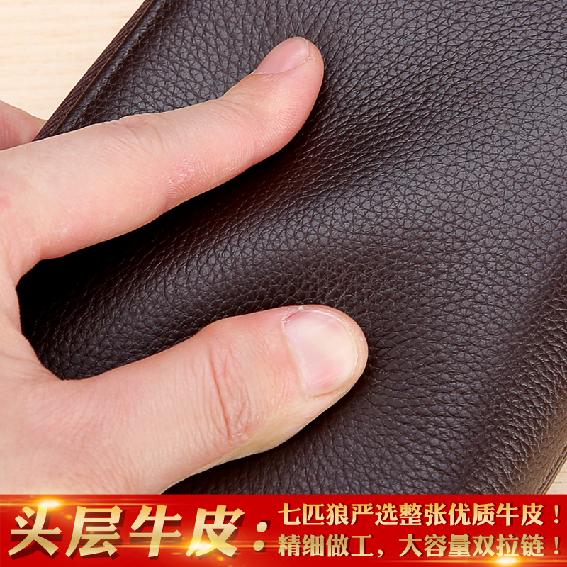 Seven wolves handbag men's long purse genuine leather double pull-in-hand grip with Baotou layer pure cow leather bag Han version of the tide