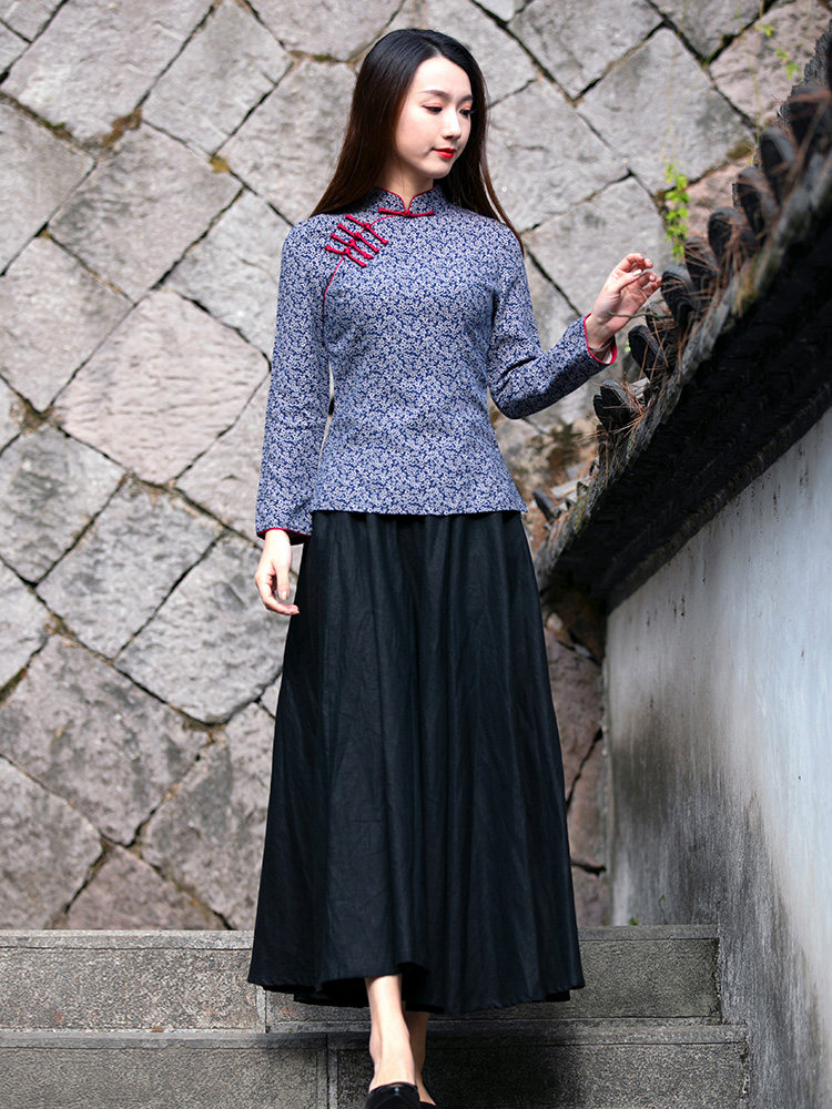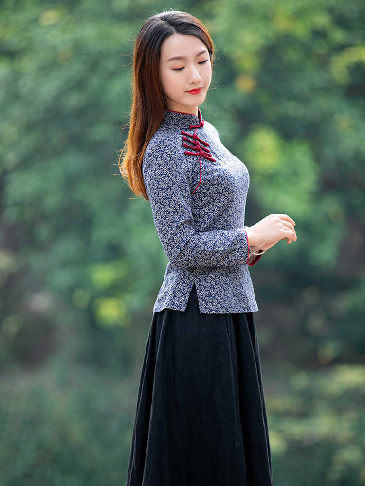 Junya Tang Costume Women China Wind Improvement Qipao Blouse Blouse Han Suit Partial Flap Buckle Broken Flowers Retro National Wind Women Dress