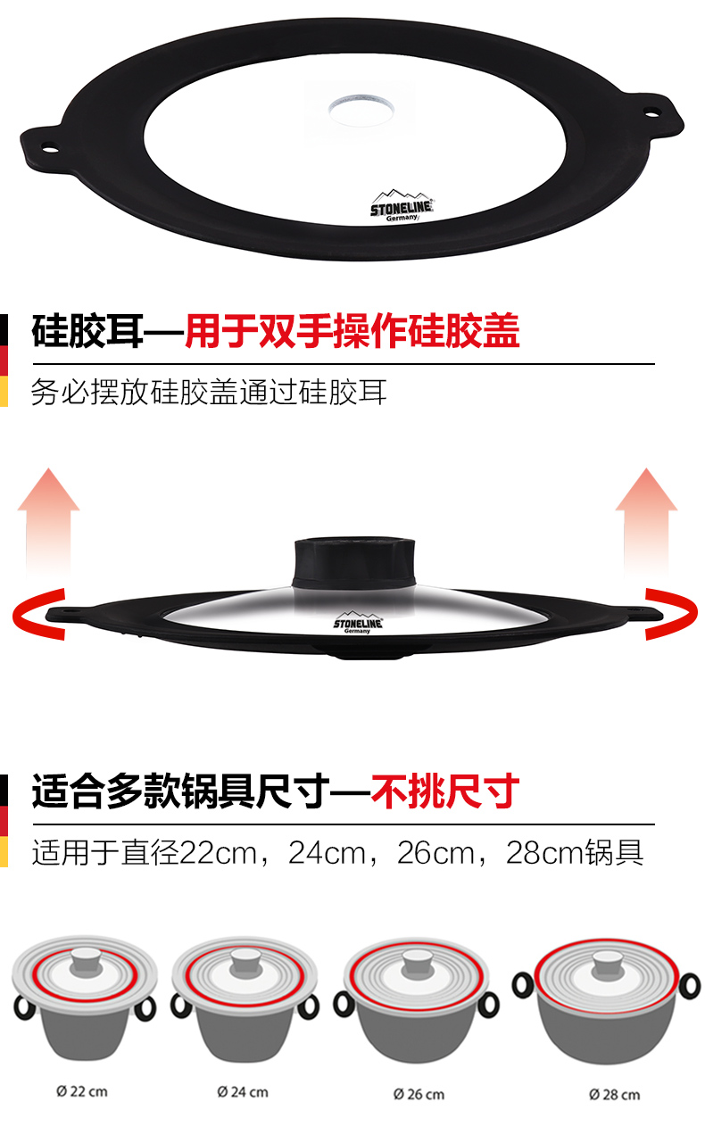 Germany stoneline24 26 28cm filter fume silicone pot cover Household wok cover universal
