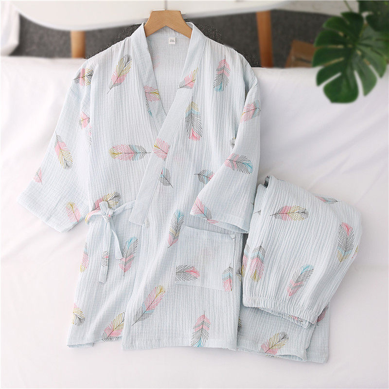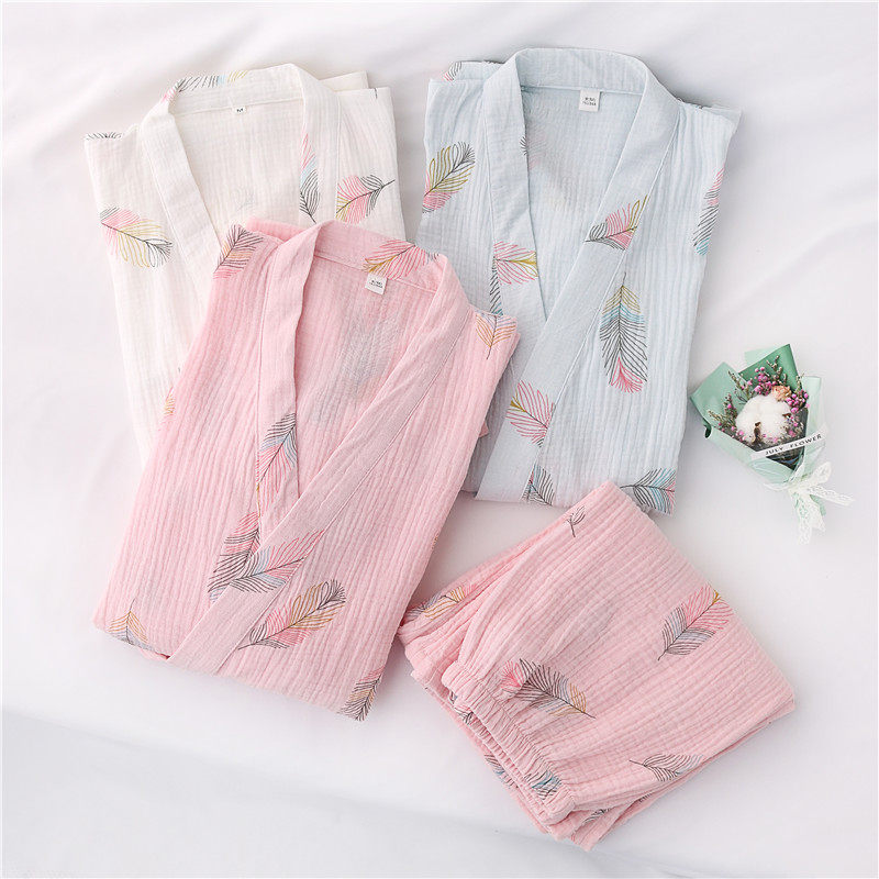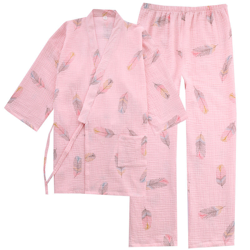 Cotton Hanfu pajamas women spring and autumn cotton cropped sleeves long pants crepe thin summer sweat steamed home wear set