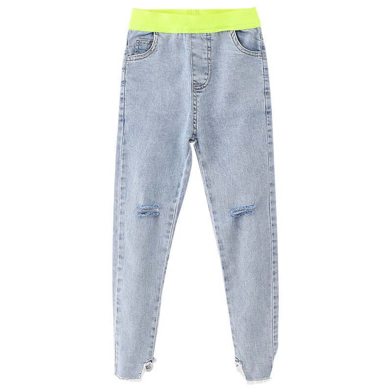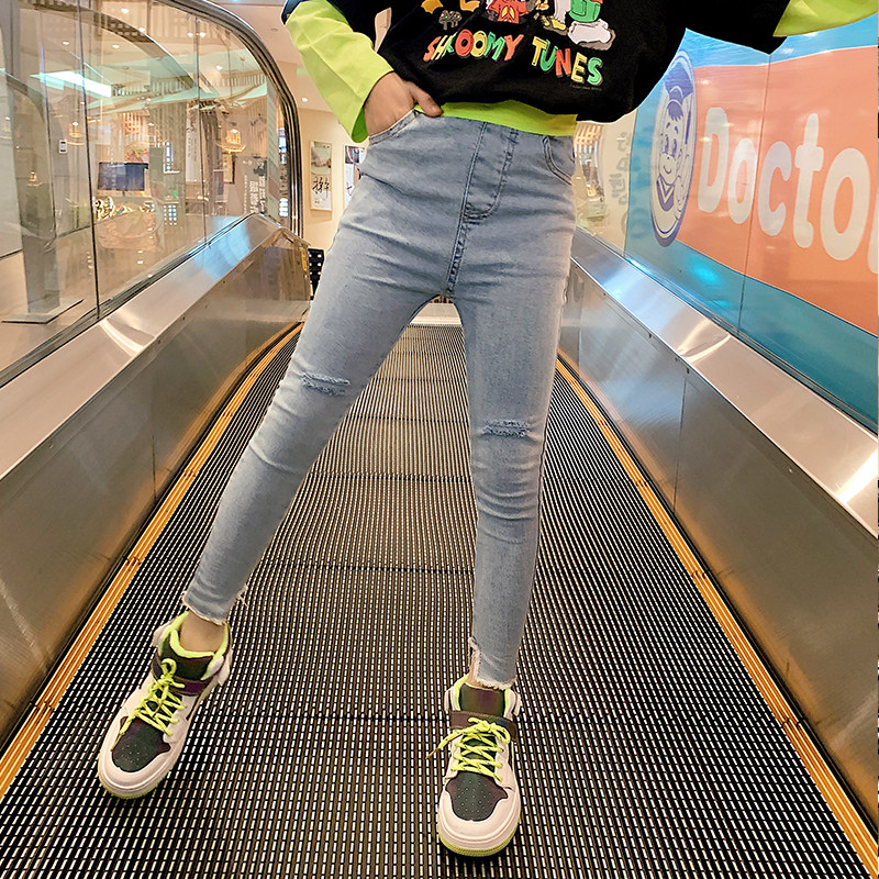 Girls' jeans 2022 new Korean style fashion children's foreign style elastic pants for big boys and girls 12-15 years old